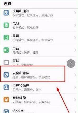 2、进入设置菜单后,点击打开【安全和隐私】,