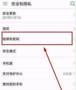 3、在安全和隐私的页面点击进入【锁屏和密码】,