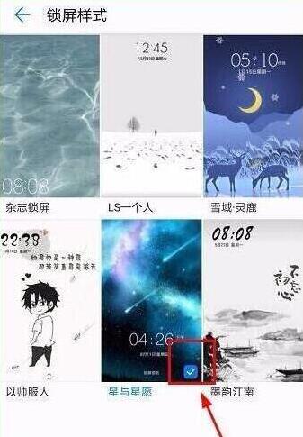 5、进入锁屏样式界面,点击勾选一个喜欢的样式即可设置。