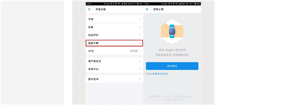 ️4.支付宝软件和手表界面都点击“开始绑定”按照他给的提示用手机扫描手表界面出现的二维码,然后手机支付宝要输入支付密码,输入完之后就是已经成功绑定支付宝了