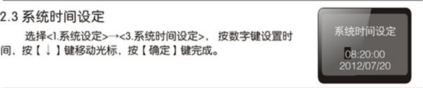 按【↑】和【↓】键选择<1.系统设定>,按【确定】键,然后选择“系统时间设定”,按【确定】键进入时间设置界面。