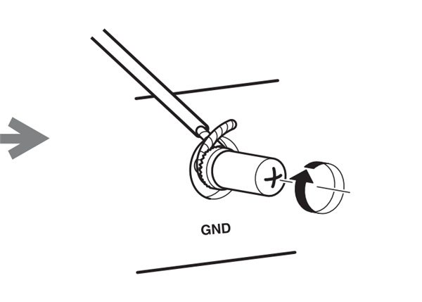 2、完全拧开 GND 端子,然后将导线绕在 GND 端子连接环的内侧。