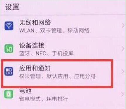 进入设置页面后,找到并点击打开【应用和通知】,