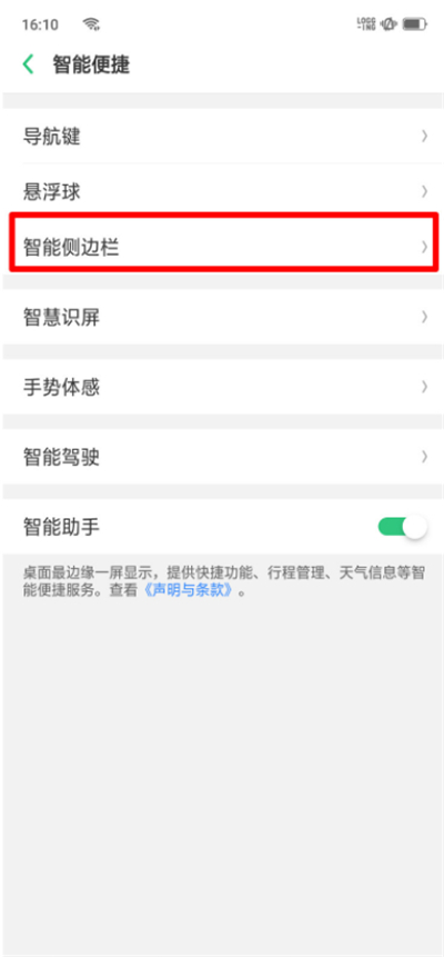 3.点击【智能侧边栏】右边的按钮开启即可。