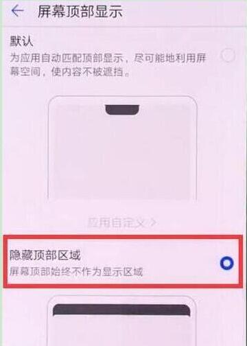 4、最后点击勾选【隐藏顶部区域】即可隐藏刘海,勾选【默认】即可恢复刘海。