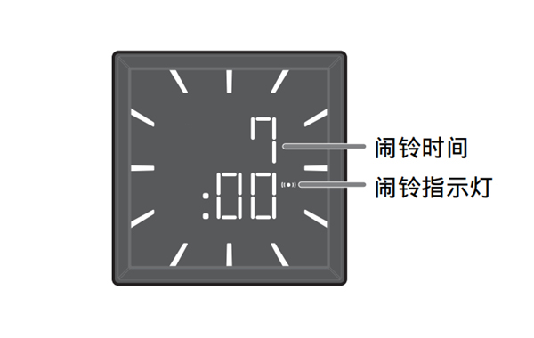 闹铃指示灯和所设定的闹铃时间将闪烁。