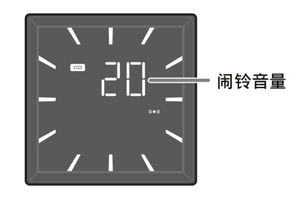 6、按 VOLUME –/+ 设定闹铃音量。