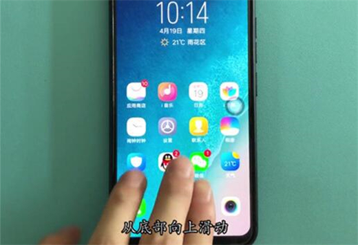 vivox21s手机的三指截屏是默认开启的,只需要在截屏的界面,同时使用三个手指从手机底部向上滑动即可截屏。