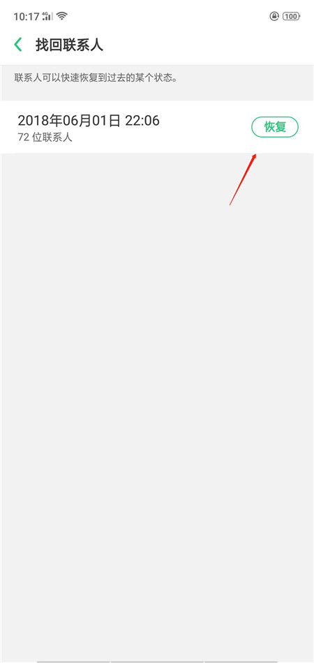 3、打开【找回联系人】,选择时间就能够恢复当时的通讯录信息,这样之前删除的联系人也回到手机上了。