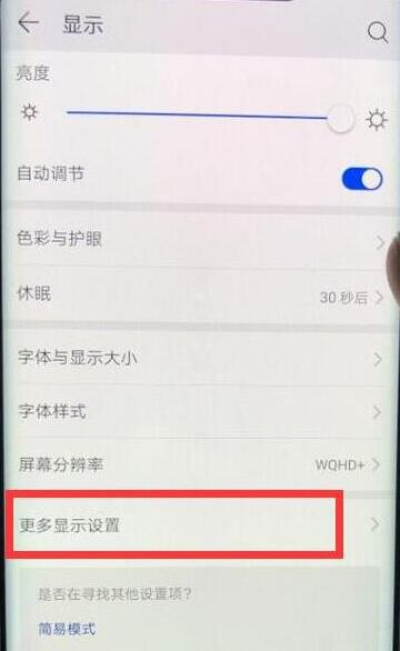 3、在显示页面点击打开【更多显示设置】-【屏幕顶部显示】,