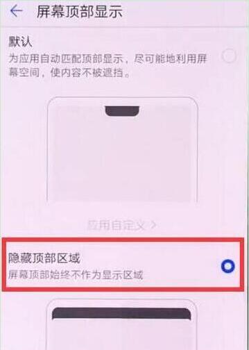 4、最后点击勾选【隐藏顶部区域】即可隐藏刘海,勾选【默认】即可恢复刘海。