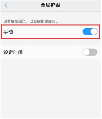 进入全局护眼,打开【手动】开关即可;