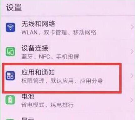 进入设置页面后,找到并点击打开【应用和通知】,