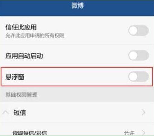 最后点击打开或关闭【悬浮窗】的开关即可打开或关闭应用的悬浮窗,来快速切换了。