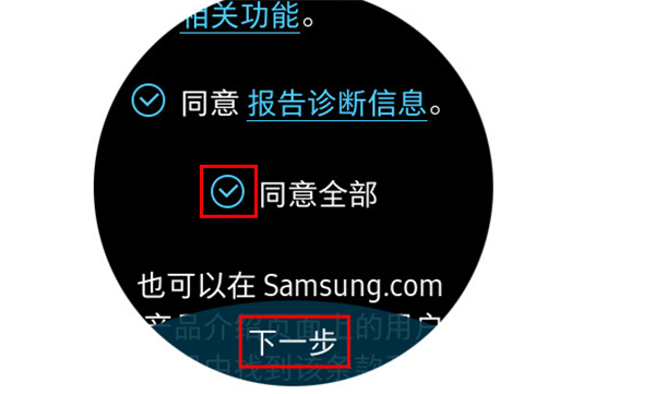 ️6.阅读条款和条件,勾选【同意全部】,然后点击【下一步】。