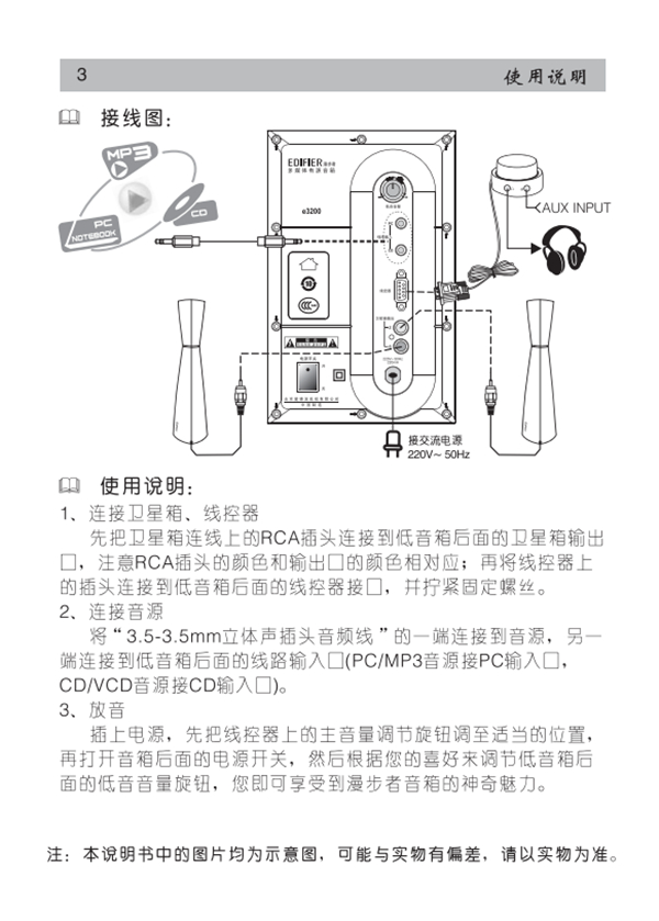 很多朋友在入手漫步者E3200多媒体音响一段时间说明书要不丢了,要不坏了,小编就在网上整理了多方资料,给大家带来漫步者E3200多媒体音响的使用说明书。