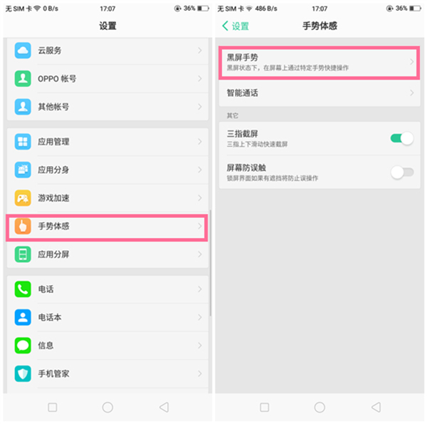 3、进入后开启【️黑屏手势】开关,可以看到以下界面。