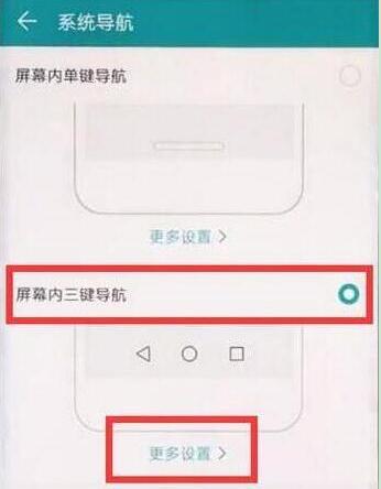 4、在我们已经勾选的屏幕内三键导航下点击【更多设置】,