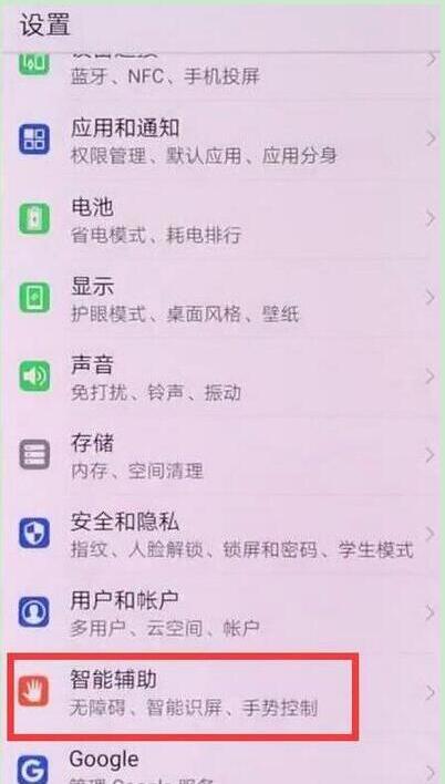 在设置页面找到并点击打开【智能辅助】,