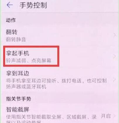 在手势操作菜单下点击打开【拿起手机】,