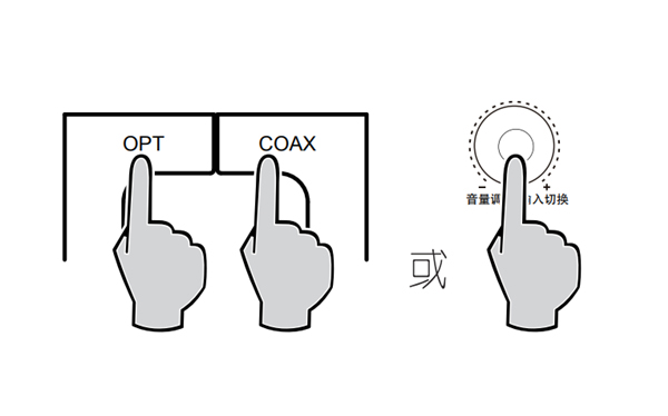 漫步者S2000TM音响使用遥控器怎么使用光纤或同轴输入1、按遥控器上的OPT/COAX键或按主箱后面板上的音量调节/输入切换旋钮选择光纤/同轴输入模式,LED灯为红色。