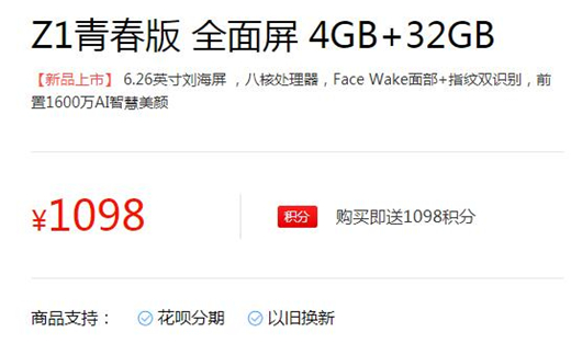 vivoz1青春版搭载高通骁龙626处理器,仅有4G+32GB内存组合,属于低端水准,配备3325mAh电池,搭载后置指纹识别+Face Wake面部识别。