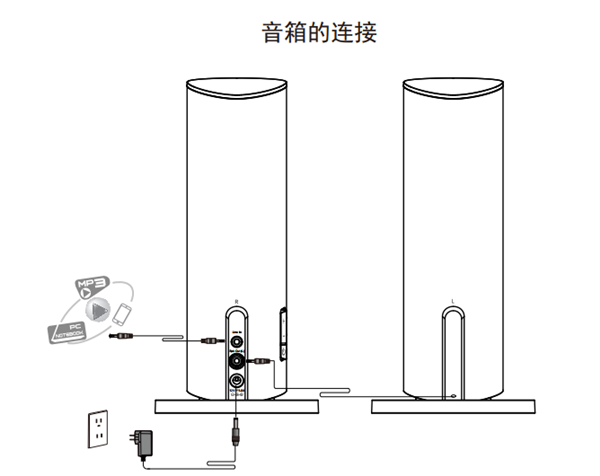 漫步R26BT多媒体音响怎么连接1、连接音源