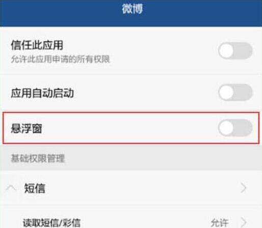 最后点击打开或关闭【悬浮窗】的开关即可打开或关闭应用的悬浮窗,来快速切换了。