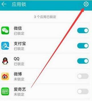 进入如下应用锁的界面后,我们点击打开右上角的【设置】图标,