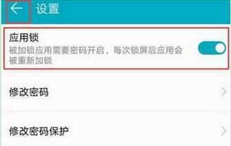 点击打开【应用锁】的开关并设置好密码,之后点击下面的修改密码即可修改,然后点击左上角的箭头返回上一个页面,