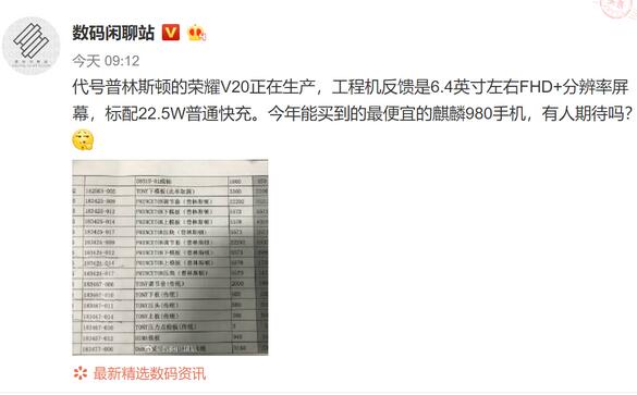 荣耀v20什么时候发布?曝光称荣耀V20已经开始生产,代号为“普林斯顿”(Princeton),那么具体会在什么时候发布呢?一起来看看吧!