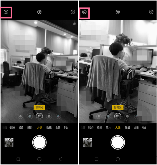 3、人像模式中点击左上角小人图标,不用走远走近,即可一键切换半身/全身照。