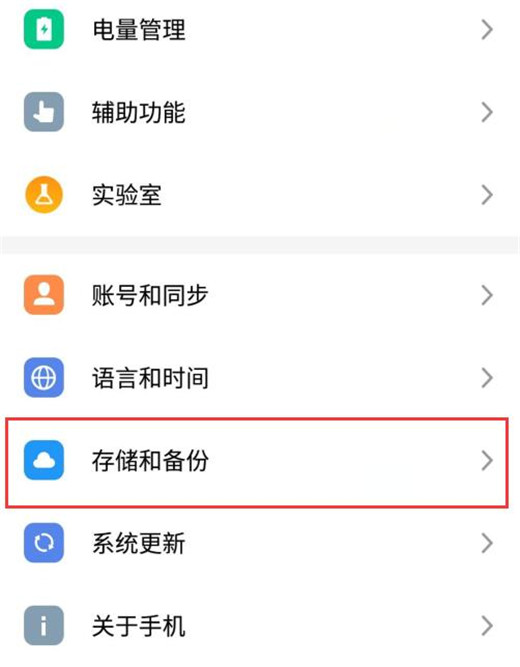 进入设置选项之后,在设置界面找到【储存和备份】选项,点击打开;