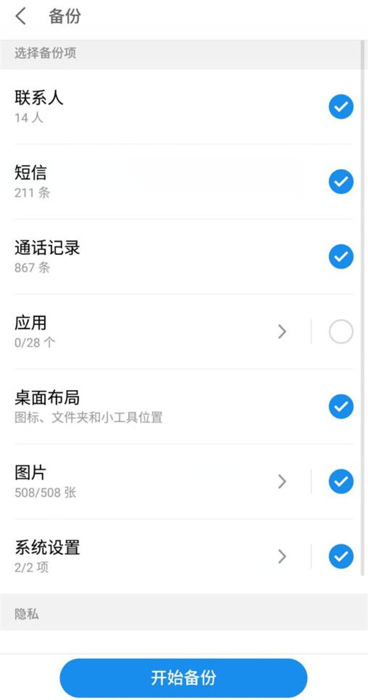 选择自己需要备份的数据文件,点击下方【开始备份】即可。
