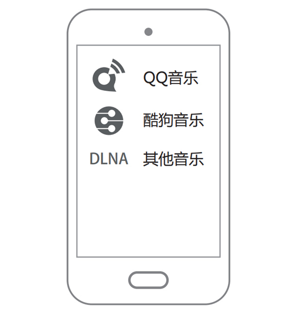 iOS 系统下:通过AirPlay或DLNA 选择S2000W作为音乐播放器,之后便可播放手机中的任何音乐。