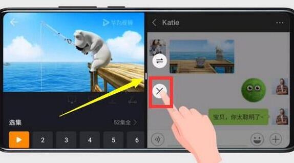 点击中间的按钮,再点击叉的图标即可退出分屏。