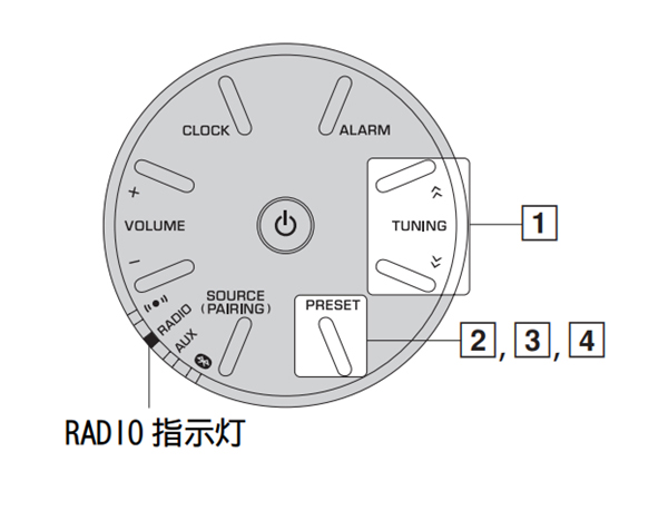 1、按 TUNING 选择喜爱的广播电台。