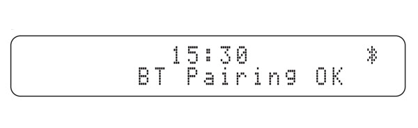 完成配对后,本机的前面板显示屏将显示 “BT Pairing OK”。