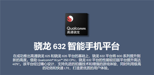 当然,很多人对骁龙632或许有些陌生。其实骁龙632是一个非常不错的SoC,它属于骁龙626的继任者,采用自家的Kryo250架构,较上一代芯片提升40%,再配以Adreno 506的GPU,表现不俗。