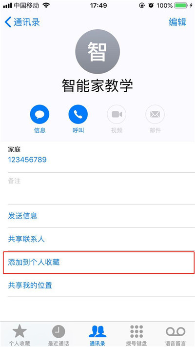 3、我们可以看到【添加到个人收藏】,点击添加即可,接下来就可以在个人收藏里面看到该联系人了。
