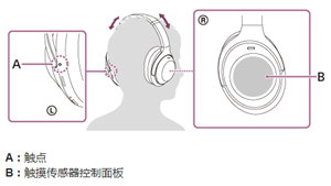 耳机的左侧单元有一个触点,佩戴耳机时请小心,不要接触到触摸式传感器控制面板。