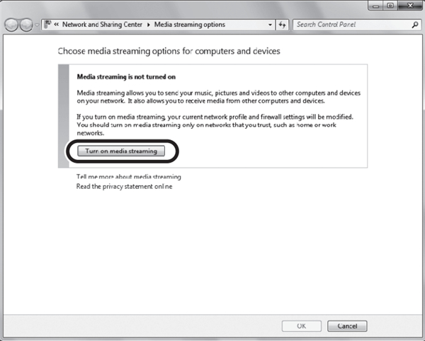 3、单击“Turn on media streaming”。
