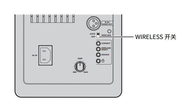 2、将后面板上的WIRELESS开关设置为“AUTO”。