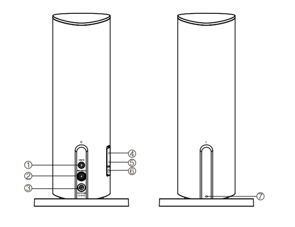 漫步者R26T多媒体音响怎么连接安装我们先来了解一下音响后面板的按键功能