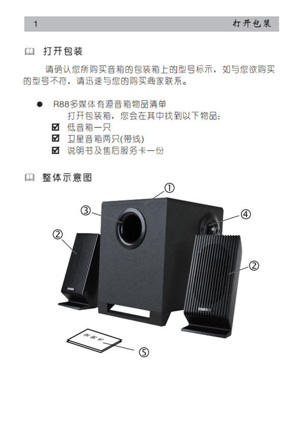 很多朋友在入手漫步者R88一段时间说明书要不丢了,要不坏了,小编就在网上整理了多方资料,给大家带来漫步者R88桌面音响的使用说明书。