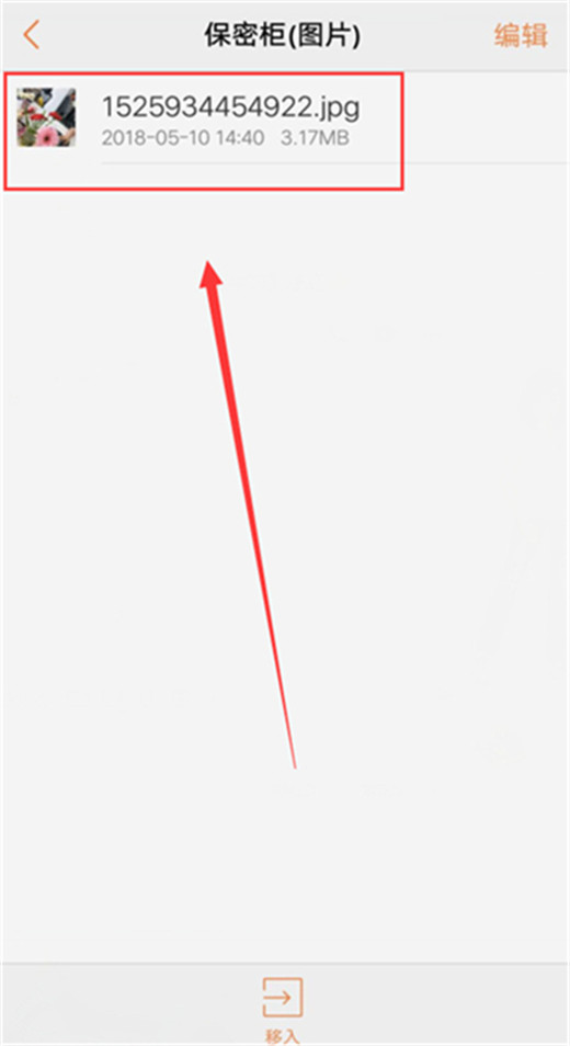 第三步,进入保密柜之后,可以选择自己隐藏在保密柜的文件进行查看,点击下方【移入】可以新增保密内容。