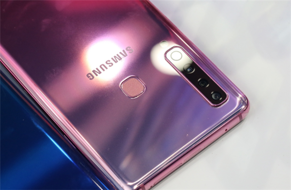 三星A9s有几种颜色三星A9s有三种配色选择,分别是鱼子黑、泡泡粉、柠沁蓝,下面是三款颜色的手机外观图: