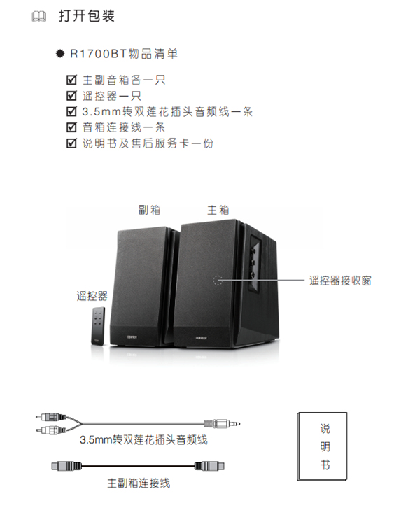 很多朋友在入手漫步者R1700BT一段时间说明书要不丢了,要不坏了,小编就在网上整理了多方资料,给大家带来漫步者R1700BT桌面音响的使用说明书。