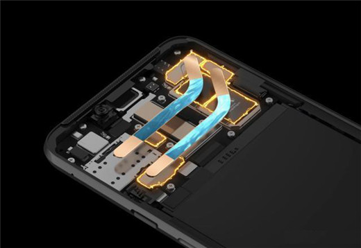 这也是手机中首次实现分区散热,包括CPU系统(CPU、GPU)、射频系统(Wi-Fi、射频pa)、拍照系统,简单来说就是对PCB上不同位置接出两根不同的热管,单热管热传能力为5W ,双热管的热传能力达到10W以上。