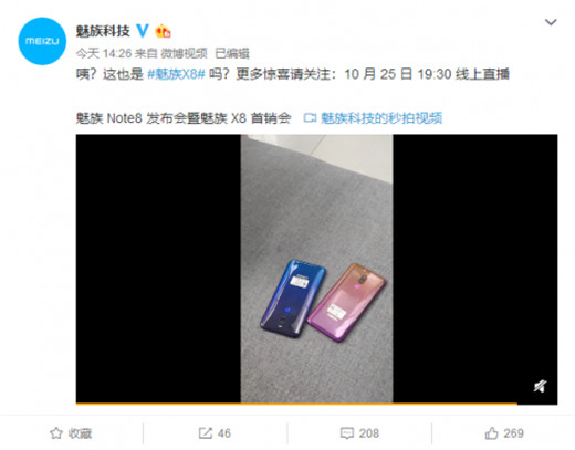 视频中,一位美女正在摆弄一部魅族X8,看起来都很正常,但在美女将手机放下的一刻,惊喜出现了:我们看到魅族X8的背部出现了两种新的配色风格,都是现在流行的渐变色设计,一个为蓝紫色调,一个为金粉色调。